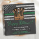 Livre d'or sur la retraite militaire de la ligne verte mince. Célébrez des années de service dévoué, votre retraite militaire et vos amis et votre famille invitations à votre fête militaire avec ce drapeau rustique de la ligne verte mince avec Bottes de l'armée en cuir Invitation à la retraite militaire. Etats-Unis Drapeau américain en couleurs Police Drapeau, noir vert blanc et or design. Cette invitation à la retraite militaire est également parfaite pour obtenir un diplôme militaire, un soldat qui s'éloigne, des déploiements et un retour à la maison, un lieu de changement dans la personnalisation. Consultez notre collection pour obtenir des cadeaux de retraite, des faveurs pour les militaires et des fournitures. DROIT D'AUTEUR © 2021 Judy Burrows, Black Dog Art - Tous droits réservés. Retraite militaire Carnet d'invité en cuir mince en ligne verte