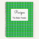 Un carnet de recettes personnalisé avec script manuscrit et des lettres de dalle sur un motif plaid vert rétro avec de petites bandes blanches et bleues pour vos recettes préférées.