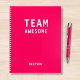 Funny Team Personalized Notes Office Meeting Carnet présente le texte "Team Awesome" avec votre nom personnalisé ci-dessous sur un arrière - plan rose néon. Personnalisez en modifiant le texte dans la zone de texte fournie. Conçu pour vous par ©Evco Studio www.zazzle.com/store/evcostudio