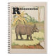 Alphabet lettre R est pour l'animal de la jungle rhinocéros marchant vers un trou d'arrosage entouré de palmiers. Dessin animalier pour enfants de l'artiste français Benjamin Rabier. "Disponible sur plus de produits" avec le lien.