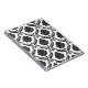 A vintage style decorative damask surface pattern influenced by rococo classical design in black detail on a white background.