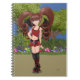 Darby the Roller Derby Fairy est une manga de style shoujo et elle porte un dessus rouge et une jupe avec des coeurs sur ses genoux, des diamants rouges et noirs sur ses chaussettes, et des flammes sur ses patins. Elle a des ailes noires et rouges et de grandes queues de cochon bouclés. Elle patine près des bois devant les champignons aux couleurs magnifiques. Illustration de KLeighE de Hinterland Harmony Art and Illustrations.