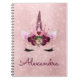 Carnet Rose Gold Unicorn Éparkle Princesse Monogramme Nom