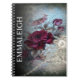 Jolie, vintage, fleurs de rose rouge sur papier journal, avec un broche et collier en faux perle, volière avec arc turquoise pour créer un style bohème luxueux, extravagant. Monogramme modèle sur l'avant fourni.