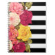 Carnet Roses sur rayures noires et blanches chic et moder