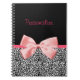 Personnalisez ce carnet repéré noir et blanc à la mode d'empreinte de léopard en ajoutant votre nom. Il a un arc mignon et girly de ruban de roses indien enveloppé à travers l'avant.