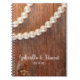 Le Carnet Spiral Rustic Pearls et le Mariage campagnard Barn Wood, décontracté mais élégant, peut être personnalisé avec les noms de la mariée et du marié et leur date de cérémonie de mariage pour créer un livre de conseils pour les jeunes mariés ou un livre d'invités pour la cérémonie de mariage. Ce livre rustique chic customisé en nuptiale présente une photo de ferme pittoresque de collier de perles blanches avec un arrière - plan patiné en bois de grange brun.