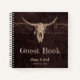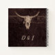 Rustique crâne de vache taureau de l'ouest pays cowboy dîner mariage réception spirale carnet gardien livre d'or. Customisez votre typographie. Style de ferme texture Brown pour marié et marié. Ancien antiquité vintage sauvage de l'ouest. Cool, tendance, design animal de ferme moderne. Copyright de l'image Marg Seregelyi Photography.