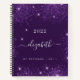 Arrière - plan violet profond, texte blanc. Décoré avec de la poussière de parties scintillant imitation. Personnalisez et ajoutez une année, votre prénom et un titre. Le nom est écrit avec un script de style moderne écrit à la main avec des swashes. Pour que les swashes ne suppriment que le nom de l'échantillon, laissez les espaces ou émoticônes devant et après le nom.