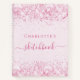 Un arrière - plan rose vif décorait la poussière de parties scintillant. Le titre : carnet de croquis écrit avec un script de style à la main moderne et girly avec des swashes. Lettres de couleur rose. Un carnet pour les dessins, esquisses, notes et devoirs scolaires.