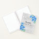Un arrière - plan métallique à l'aspect faux argenté, avec des fleurs bleues oubliées, pas des fleurs. Faux poussière de parties scintillant. Personnalisez et ajoutez un nom et un titre.