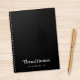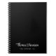 Carnet noir moderne pour votre usage professionnel ou personnel avec votre nom monogramme ou marque présentée dans un script design de signature blanche. Ajoutez du texte supplémentaire ci-dessous en lettres blanches simples.