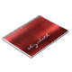 Ce design branché présente un arrière - plan moderne de feuille de métal brossé en faux rouge rubis. Personnalisez-le avec votre nom qui tourne verticalement sur le côté droit en écriture manuscrite blanche.