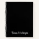 Carnet noir moderne avec votre nom monogramme dans un script blanc élégant.