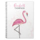 Ce design présente un flamant rose avec un nom personnalisé, pour toute professionnelle ou fille féminine rose, un style chic tendance élégant tendance un style moderne calligraphie police de caractères, un prépa amusant mignon fantaisiste, pour la vie côtière plage tropicale oiseau, un cahier d'école affaires bureau à domicile, un nom personnalisé personnalisable, une illustration de nature faune aquarelle, un simple élégant stylé amusant