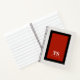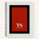 Cette conception de cahier distinctive présente des éléments de design classiques avec un bloc de couleur contrasté géométrique et un cadre rectangulaire en rouge vif et noir sur fond blanc cassé. Un modèle de texte est inclus avec des initiales de monogramme et un nom pour personnaliser comme vous le souhaitez. Ce look est élégant et sophistiqué, mais simple et moderne avec un attrait neutre en termes de genre.