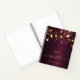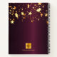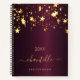 Un arrière - plan à l'allure métallique bordeaux foncé, décoré d'étoiles à gouttes d'or. Modèle pendant un an. Personnalisez et ajoutez un nom et un titre. Le nom est écrit avec un script de style à la main moderne doré avec des swashes. Peut être utilisé comme carnet d'esquisses, journal intime, pour la journalisation, la prise de notes, listes de choses à faire. Pour que les swashes ne suppriment que le nom de l'échantillon, laissez les espaces ou émoticônes devant et après le nom.