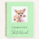 Un arrière - plan vert menthe. Personnalisez et ajoutez votre propre photo de votre chien ou animal de compagnie. Ajoutez votre nom et un titre. Le titre est écrit avec un script de style moderne écrit à la main. Lettres de couleur noire. Un carnet pour dessiner votre chien, prendre des notes ou pour les devoirs scolaires.