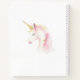 Un carnet de croquis pour l'école ou sa créativité. Arrière - plan blanc, décoré d'une mignonne licorne rose pastel. Personnalisez et ajoutez un nom.