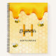 Jaune, arrière - plan blanc avec un motif de nid d'abeille. Décoré avec du miel doux et doré qui dégouline et de jolies bourdons. Modèles pour votre nom et lettre monogramme, et un titre de livre. Retour : motif de nid d'abeille et une seule bourgeoise. Parfait pour dessiner, esquisser, gribouiller et écrire vos idées d'artisanat créatif.
