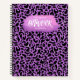 Un carnet de croquis personnalisé d'empreinte de léopard violet. Les mots dans une police manuscrite personnalisée avec votre nom ci-dessous. Customisez le carnet avec la police et le nom de votre choix pour que quelqu'un se sente spécial. Fait un cadeau amusant pour les anniversaires ou pour Noël. Vient dans une variété de couleurs. Conçu pour vous par Blackberry Boulevard.