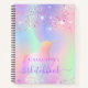 Un arrière - plan tendance aux couleurs irisées avec des couleurs pastel unicorne et arc-en-ciel rose, violet, or rose, vert menthe. Décoré avec de la poussière de parties scintillant en rose, violet et une licorne de couleur arc-en-ciel. Personnalisez et ajoutez un nom. Le titre : Sketchbook est écrit avec un script à la main tendance avec des swashes. Pour que les swashes ne suppriment que le nom de l'échantillon, laissez les espaces ou émoticônes devant et après le nom. Utilisez-le comme carnet d'esquisses, dessin, prise de notes, idées artisanales, école, travail à domicile.