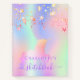 Un arrière - plan tendance aux couleurs irisées avec des couleurs pastel unicorne et arc-en-ciel rose, violet, or rose, vert menthe. Décoré d'étoiles roses et d'un licorne de couleur arc-en-ciel et de faux or coulant. Personnalisez et ajoutez un nom. Le titre : Sketchbook est écrit avec un script à la main tendance avec des swashes. Pour que les swashes ne suppriment que le nom de l'échantillon, laissez les espaces ou émoticônes devant et après le nom. Utilisez-le comme carnet d'esquisses, dessin, prise de notes, idées artisanales, école, travail à domicile.