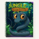 Personalize the back cover of this adorable "Jungle Welcome" notebook! Featuring a unique whimsical baby indigo snake cartoon graphic tropical animal character in a lush nighttime forest scene, inviting you into a world of imagination and creativity. This reptile design is perfect for serpent lovers, woodland safari nature wildlife fans, and anyone who enjoys cute, cozy zoo vibes.