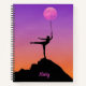 Cette élégante conception à thème de danse présente une silhouette d'une ballerine en pointe tenant la lune. Personnalisez en modifiant le texte dans la zone de texte fournie. #ballet #ballerina #danse #danseuse #gymnast #enpointe #personalize #personnalisation #nom #girly #sports #féminine #lune #espace #coucher de soleil #sillogette #cadeaux #cadeaux #imaginaire #chic #modernité #élégance #féminine #carnets #papeterie