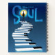 L'âme de Disney/Pixar | Art théâtral pour Soul, mettant Joe au sommet des marches de style piano clé avec le logo brillant derrière lui.
