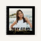 Carnet noir et or personnalisé pour un baccalauréat ou un diplômé du secondaire afin de recueillir des souvenirs, des signatures et des conseils de la famille et des amis à une fête de graduation. Téléchargez votre propre photo et ajoutez leur nom dans la police de script mignonne et tendance et tapez dans l'année de classe graduée pour un carnet de couverture frontale personnalisé. La couleur de la bordure et de l'arrière - plan peut être changée pour correspondre aux couleurs de l'équipe du lycée ou du collège.