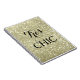 "Very Chic" sur un arrière - plan scintillant et doré accentue ce carnet.