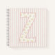 Carnet rayé rose, personnalisé avec la lettre Z dans un motif floral.