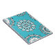 Un carnet en spirale avec mon Mandala Motif 1, imprimé sur un arrière - plan bleu. Cette version est centrée sur mon Design 2 Mandala.