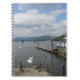 Sur la rive de Windermere à Bowness, vous verrez une belle vue sur le lac et les fells lointaines. C'est une journée d'été ensoleillée avec des nuages blancs et moelleux flottant dans un ciel bleu. Canards et cygnes nagent dans les eaux peu profondes et un yacht blanc se mouille sur son mouillage.
