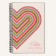 Un coeur arc-en-ciel coloré est le point central de ce carnet à spirale. Il y a de l'espace pour customiser le design dans le coin inférieur droit. L'arrière du journal comporte un motif de coordination de rayures rouge, jaune, orange, rose et verte. Ce design serait parfait pour une jeune fille, peut-être pour un anniversaire ou un cadeau de Saint-Valentin!