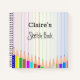 Livre d'esquisse personnalisé avec nom et crayons colorés. Paged peut être vierge ou doublé. Les carnets sont de trois tailles.