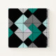 Personnalisez ce carnet à motif de mini-grange avec un nom ou un autre texte et votre choix de styles de papier, y compris le croquis vierge ou le papier graphique. Motif traditionnel simple bloc de courtepointe "Card Trick" créé dans une palette neutre moderne de bleus turquoises et de nuances grises sur le noir. Un cadeau sympa pour les quilters ou autres créatifs.