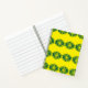 Un élégant carnet à couverture rigide avec une couverture jaune vif et un motif géométrique vert audacieux. Comprend du papier graphique à l'intérieur et une liaison spirale noire. Idéal pour les notes, les croquis ou la planification.