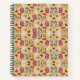 Spiral notebook with front and back covers featuring a playful winter pattern. The design includes hot drinks, mittens, and snowflakes on a warm beige background.