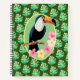 Ce design charmant a un thème tropical. L'arrière - plan vert foncé a un motif de feuilles tropicales accentue l'étoile de ce design. Ce magnifique Toucan est perché sur une branche et entouré de fleurs tropicales colorées. La couleur arrière - plan peut être changée en une couleur de votre choix. Ces carnets polyvalents sont disponibles en trois styles et sont offerts avec un choix de six couleurs spirales. Optez pour une conception personnelle encore plus poussée en choisissant l'une des huit options de conception de pages, dont College Ruled, Graph et Recipe.