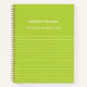 Séjournez organisé dans un style élégant grâce à ce carnet vert en spirale audacieux au design moderne et propre. La couverture comprend une ligne de nom personnalisable "personnalisé" et une deuxième ligne pour votre profession, sujet, ou tout texte que vous choisissez. La moitié inférieure est accentuée de rayures horizontales nettes, lui donnant un aspect frais et contemporain. À l’intérieur, vous trouverez des pages alignées de haute qualité, parfaites pour la prise de notes, la journalisation ou la planification. Léger mais durable, ce carnet est idéal pour les étudiants, les professionnels ou les créatifs qui veulent une touche personnalisée à leur papeterie.
