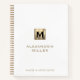 Faites une déclaration avec cet élégant carnet de logo blanc et or initial. Le design sophistiqué comprend votre logo initial personnalisé en or sur un arrière - plan blanc, lié en spirale. Parfait pour noter des notes, suivre les rendez-vous ou écrire votre prochaine grande idée.