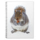 Adorable portrait photograph of a grey squirrel caught nibbling a nut in the snow.