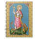 En attente de bébé ? Retrouvez vos pensées alors que vous anticipez l'événement béni dans ce charmant carnet avec St. Margaret sur la couverture! + Selon la tradition, Sainte Marguerite (ou Sainte Marina le Grand Martyr) a donné sa vie au Christ pendant la persécution de Dioclétien au début du quatrième siècle. Bien qu'elle soit un célèbre martyr vierge, ironiquement elle est la sainte patronne des femmes enceintes et des femmes en travail. Le diable sous couvert de dragon, comme le raconte cette histoire d’origine inhabituelle du patronage, l’a avalée toute entière. Cependant, la croix qu’elle portait irritait tellement les entrailles du dragon qu’il l’a ramenée ou rompue pour se débarrasser d’elle. Même si les papes et les hagiographes médiévaux jugeaient cette histoire fantaisiste, elle fut néanmoins adoptée par les laïcs et les artistes, ne serait-ce que pour son symbolisme. Et la croix et le dragon ont été ses principaux attributs depuis. + Cette image de St. Margaret est particulièrement attrayante. La sainte, dont la beauté était légendaire, se dresse sur le dos d'un grand dragon vert qui touffe son manteau avec ses dents. Elle est couronnée d'une guirlande de roses, ses longs cheveux blonds qui coulent sur ses épaules. Elle porte un manteau rose vif sur une tunique blanche contre un arrière - plan bleu à motifs de petits points blancs et d'étoiles. + Cette gamme de produits met l’accent sur le parrainage de la grossesse et de l’accouchement par St. Margaret. Les couleurs dominantes rose et bleu cravate bien avec la coutume moderne d'utiliser ces couleurs pour les bébés filles et garçons. La doublure jaune doré du manteau permet un thème neutre pour le genre. + Fête : 20 juillet + Crédit photo (SAU 038) : Empreinte dorée néogothique antique à la frontière florale de St. Margaret [d'Antioche]", initialement publiée en chromolithographie par la Société de St. Augustin, Bruges, Belgique, fin 19ème siècle, de la collection privée du designer de l'ère religieuse. + Vous préférez un arrière - plan de couleur solide ? Supprimez simplement l'image du motif.