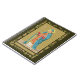 Dans ce portrait en long et en large d'une empreinte dévotionnelle datant de la fin du XIXe siècle, St. Thomas Becket est représenté fidèle à son premier type : il est représenté dans son premier : grand, mince et rasé. Il tient sa croix archiépiscopale dans sa main droite et porte un livre lectionnaire ou évangélique dans sa gauche. Il est gardé dans des comédies canoniques presque complètes, c'est-à-dire qu'il porte un dalmatic rouge sur une tunique blanche accessoirisée de gants violet rouge et d'un miter bleu vif. Il porte probablement aussi sur ses pieds, qui jettent un coup d'oeil sous ses serviettes de peignoir (bas de soie cérémonielle) sur ses sandales épiscopales (basses chaussures ressemblant à des pantoufles ou des pains modernes). Il ne lui manque que la croix pectorale et l'anneau requis. (L'omission d'un anneau est un oubli artistique commun.) Une face bleu vif avec doublure jaune-vert complète l'ensemble. Et puis, il y a l'épée exceptionnellement placée qui perce sa tête miteuse de côté en côté... + Tout au long de l'histoire, l'épée a été l'arme principale défensive et offensive. De nombreux saints, hommes et femmes, ont des épées comme attributs. Dans une étude iconographique en deux volumes d'environ 1000 saints, une épée est associée à plus de 15% ou 150 d'entre eux ! L’épée est un attribut si répandu que sa seule présence est généralement insuffisante pour identifier l’identité d’un saint donné. + Le contexte aide. Certains saints, comme les saints royaux, portent une épée comme symbole du pouvoir séculier. D'autres saints, soldats-saints, brandissent des épées comme symbole de leur profession. En de rares occasions, certains saints portent même deux ou trois épées dont la signification varie. Mais surtout, les saints aux épées sont des martyrs rouges, c'est-à-dire des saints qui sont morts pour la Foi. + Le plus souvent, l'épée signifie la mort par décapitation. Dans l'art narratif, l'exécution elle-même peut être dépeinte. Dans les compositions à silhouette unique, le Saint tient habituellement une lame non bâtie à son point latéral vers le bas ou à son point d'épaule vers le haut. Le placement de l’épée dépend de la longueur et de la longueur de la figure en question ou de la demi-longueur de celle d’un projectile. Dans des formats plus graphiques, l’épée peut être logée dans la tête médialement, coincée à l’arrière du cou, roulée à travers la gorge, ou perçant le coeur ou une autre partie du corps. + Le martyre de saint Thomas Becket par quatre assassins qui brandissent l’épée commença à être dépeint peu après sa mort (voir M 030). Le cadre intérieur d’un autel, le nombre d’assassins avec leurs repères héraldiques respectifs et la présence de son porteur croisé suffisent à distinguer le martyre de Becket de celui de la plupart des autres saints. Les rares représentations de sa décomposition laissent peu de place à douter de qui est dépeint. Les premiers "portraits" de Becket sont toutefois moins caractéristiques. D'intérêt iconographique, de telles représentations ne le dépeignent que comme archevêque sans autre emblème, l'identification étant faite par des inscriptions. Peu à peu, les portraits de Becket ont été munis d’une épée (voir M 033) et de blessures à la tête (K 34). La même étude mentionnée dans le premier paragraphe énumère quelque 35 saints qui étaient évêques ou archevêques associés à une épée. Cependant, un seul, à l'exception peut-être du moins connu Saint Théodard de Masstrict, est représenté par une épée qui coule la tête d'un côté à l'autre : St Thomas Becket. C'est de loin la façon la plus populaire de représenter le Saint aujourd'hui. + St Thomas Becket est le patron du clergé laïc. + Fête : 29 décembre + Crédit photo (P 005) : Image antique de St. Thomas Becket d'une empreinte dévotionnelle de la fin du 19ème siècle en chromoxylographie, publiée à l'origine par Friedrich Pustet, Regensburg, New York, et Cincinnati. De la collection privée de l'architecte de l'éphémère religieux.
