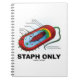 Humour médical et de santé avec une bactérie (prokaryote) sur ce carnet, avec la langue dans la joue disant "Staph Only" (Personnel seulement)! Pas besoin d'être microbiologiste ou bactériologiste pour en profiter !