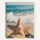 Un carnet en spirale personnalisé avec une photo pittoresque. Une grande étoile de mer dressée sur une plage de sable. Une belle mer bleue avec des vagues de surf blanc en arrière - plan.