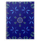 Cette oeuvre présente un motif abstrait dynamique et symétrique contre un arrière - plan bleu indigo profond. Le design associe des éléments floraux et géométriques, avec des formes lumineuses en forme de pétales disposées en formations radiales, ressemblant à des fleurs stylisées ou des étoiles. Ces pétales brillent dans les tons bleu électrique avec des contours verts subtils, créant un sens dynamique de la profondeur et de l'énergie. Entre les motifs plus gros, on trouve de petits amas d'orbes irisées, ressemblant à des bulles, dans les tons arc-en-ciel - rouge, turquoise, rose et vert - ajoutant une touche ludique et futuriste. Au centre de la composition se trouve une formation de mandala kaléidoscopique composée de ces mêmes sphères brillantes, ancrant le design et améliorant sa symétrie hypnotique.