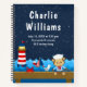 Ce carnet mignon et amusant dispose d'un petit singe marin sur une terrasse en bois avec un mouette et un crabe. Dans l'arrière - plan il y a un phare rouge et blanc, un oiseau mignon sur un voilier, des vagues de l'océan et un ciel étoilé bleu marine. Le texte combine des polices audacieuses et serif pour un look élégant et moderne. Il peut être personnalisé avec les statistiques de naissance de votre bébé, comme le nom, la taille, la date et l'heure de naissance, ou si vous souhaitez le donner comme cadeau de douche vous pouvez modifier et supprimer du texte.